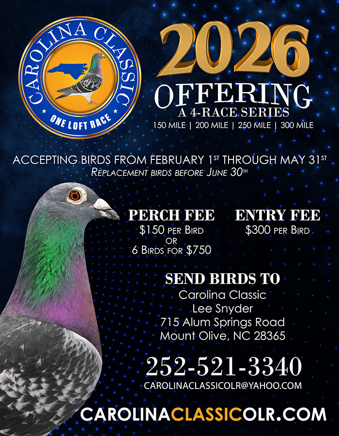 Hosted by lifelong pigeon fancier Lee Snyder, the Carolina Classic offers a fair, exciting, and transparent races where top breeders put their birds to the ultimate test.